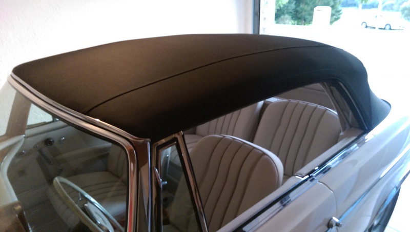 Ein gefürchtetes und leider auch recht kostspieliges Thema für alle Restauratoren und Besitzer klassicher cabrios. Nur wenige Leute sind überhaupt in der lage verdecke mit fütterung,wie es sie beim 111, Adenauer, 170, 220, 300s oder auch beim VW Käfer gibt überhaut Fachgerecht zu erneuern.Die Problemzonen sind hier vielfältig,so sollte die Außenhaut nicht zu weit aber auch nicht zu stramm sitzen ,denn die Spriegel sollte man nicht durchsehen aber beim fahren soll es sich auch nicht zu stark aufblähen.Ebenso sollte es Faltenfrei sein und an den Seiten durch die Spannseile eng anliegen wobei die Fütterung schon exakt gearbeitet sein muß damit sie hier nicht im Wege ist.